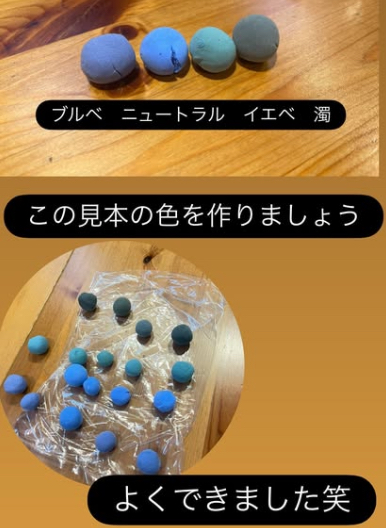 また初の試みですが、粘土を使って色を見極める練習もやりました!