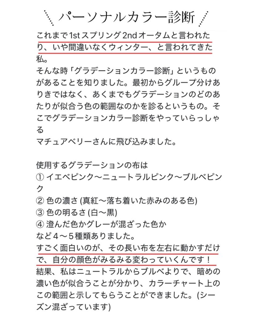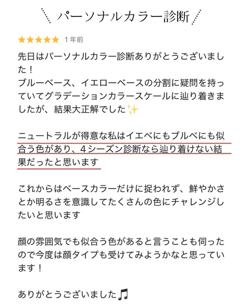 パーソナルカラー診断を受けたあとに、顔タイプやメイクレッスンを続けて受けていただくケースもとても多いです。