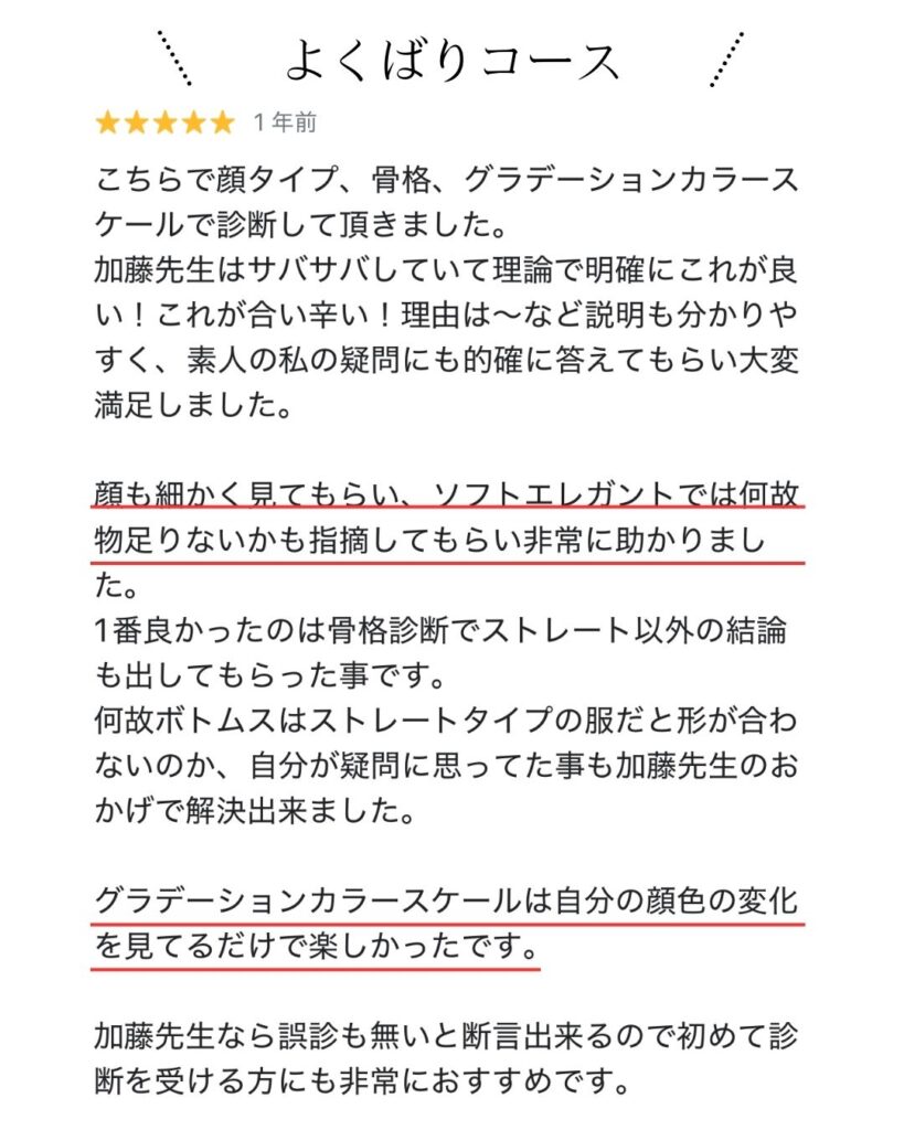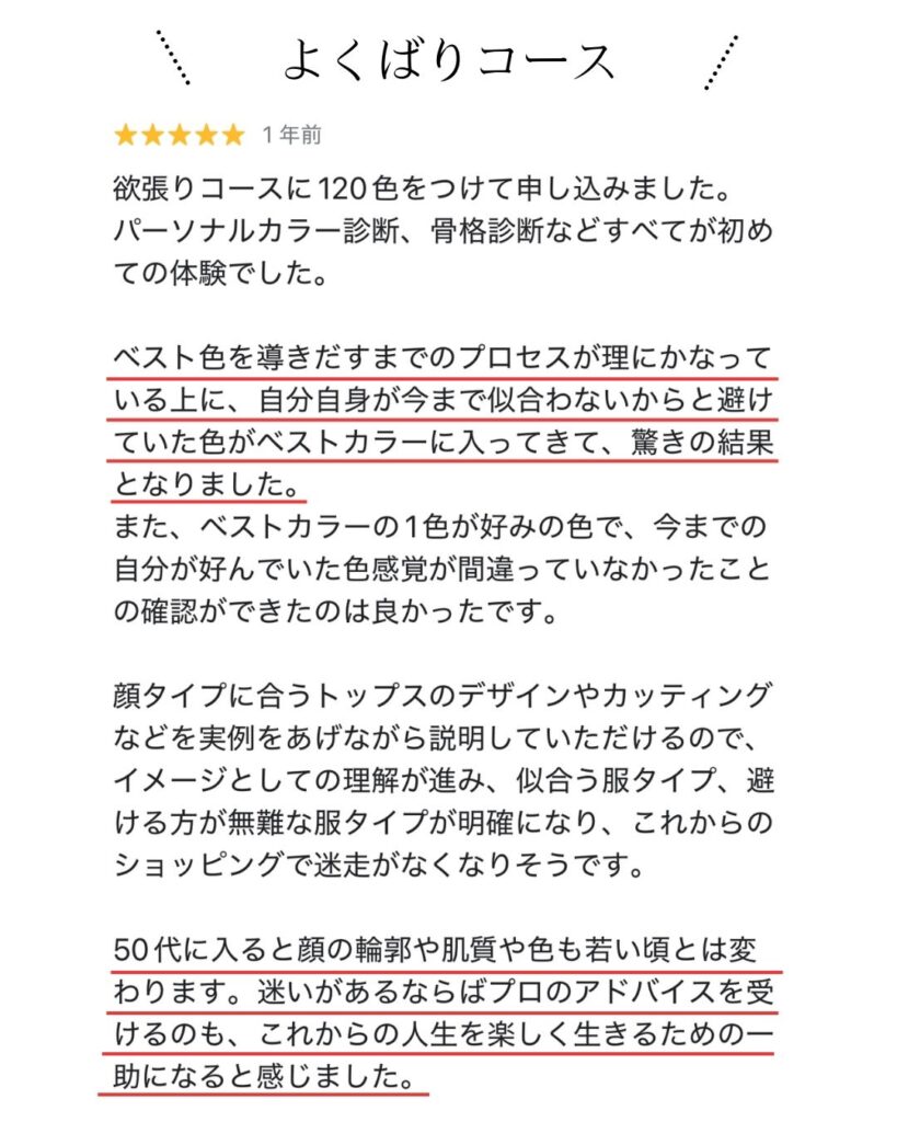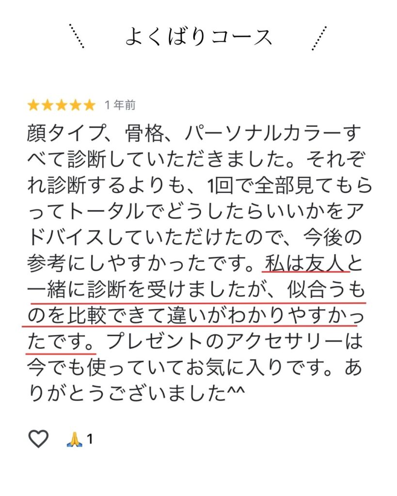 人気メニューは「よくばりコース」と「パーソナルカラー診断」です!